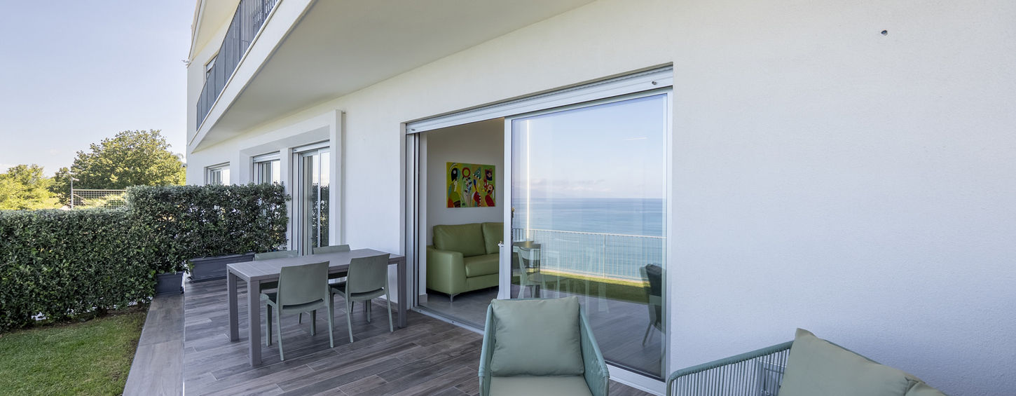Un’oasi di relax immersa nel verde, dove comfort e natura si fondono armoniosamente.Ogni appartamento offre un giardino curato, una splendida terrazza con vista mare e spazi esterni attrezzati con tavolo e sedie e divanetti, ideali per godersi momenti di tranquillità all’aria aperta.